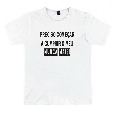 Camiseta com a estampa Preciso começar a cumprir o meu NUNCA MAIS